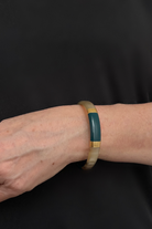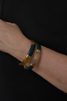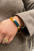 Le bracelet Nila est un jonc artisanal unique, fabriqué à partir de corne véritable de buffle et sublimé par des feuilles d’or, dans une teinte bleu canard profonde et élégante. Chaque bracelet est différent et exclusif, la matière naturelle rendant chaque pièce unique.